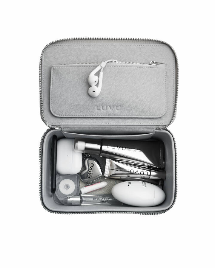 Косметичка LUVU из мягкой серой эко-кожи — удобный способ хранить любимые бьюти-продукты. Лаконичный дизайн и продуманная внутренняя организация делают её идеальным аксессуаром как для дома, так и для путешествий: всё нужное всегда под рукой. Новинка для тех, кто ценит стиль, практичность и красивый порядок.
